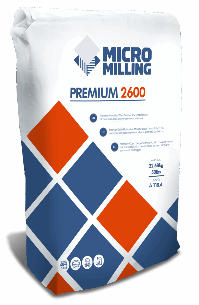 Premium 2600 Thin Set is specifically targeted to the customer who has chosen to go with a porcelain tile but is concerned about the additional cost of current Premium Thin Set (ANSI A118.4). With a noticeable increase in the use of the more durable porcelain tile in the market, Micro Milling aims to promote best practices with the launch of this economically priced product.